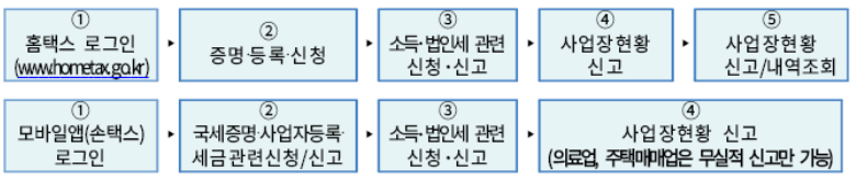 1) 세무서 방문 없이 홈택스(www.hometax.go.kr)와 손택스(모바일 앱)에서 가능