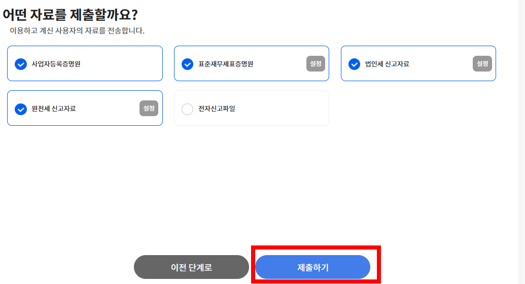 파일도 하나씩 업로드하는 것도 아니고 국세청 신고 자료를 끌어오니깐 너무 쉽게 진행한 것 같습니다.