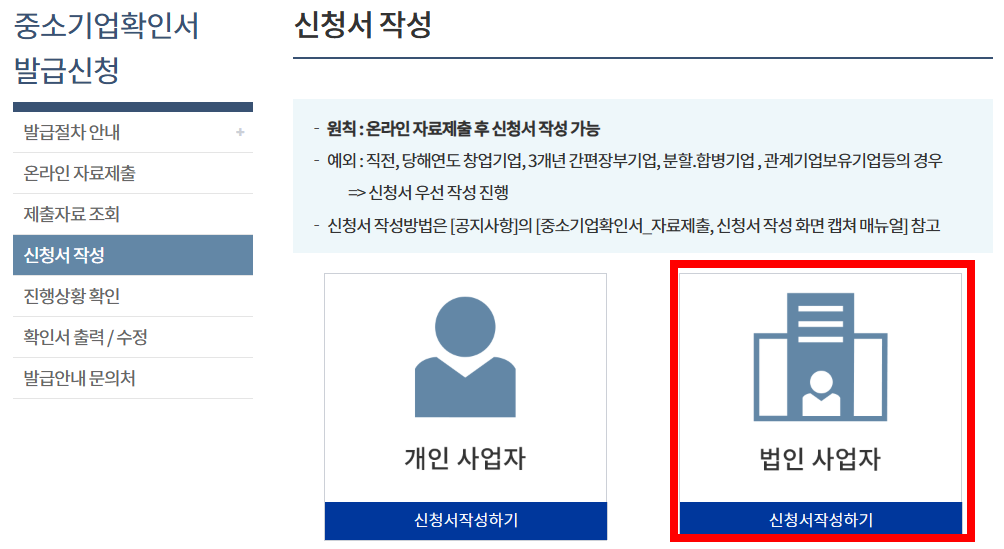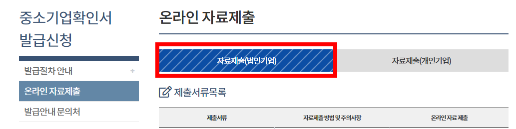 중소기업 확인서 발급 절차 (법인 기업, 온라인 자료제출 안내)