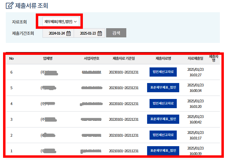 ■ 2단계 : 제출자료 조회