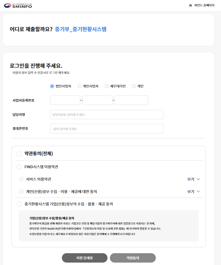 어디로 제출할까요? 는 자동으로 중기부_중기현황시스템으로 노출됩니다.