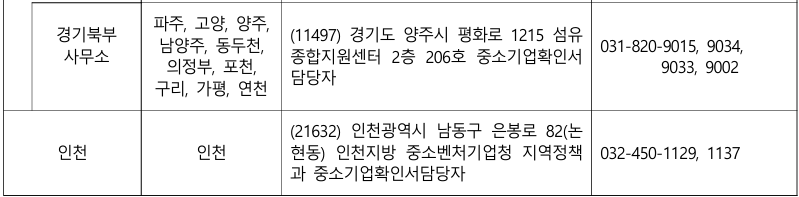 - 일반상담 : 국번 없이 1357(중소기업통합센터)