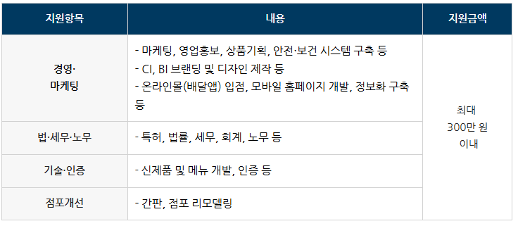 - 최대 300만 원의 경영 개선 바우처 제공 (국비 80%)